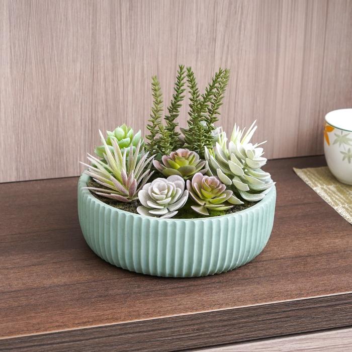 ARTHOME 20.3 CM TANAMAN ARTIFISIAL SUKULEN DENGAN POT - HIJAU