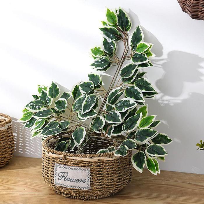 (12 PCS)Daun pohon beringin buatan, digunakan untuk dekorasi pesta pernikahan dan acara lainnya. Plastik daun hiasan