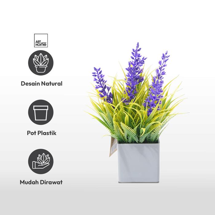 ARTHOME 20 CM TANAMAN ARTIFISIAL GRASS LAVENDER DENGAN POT - BIRU