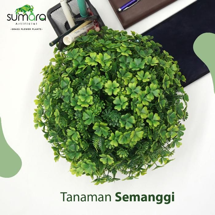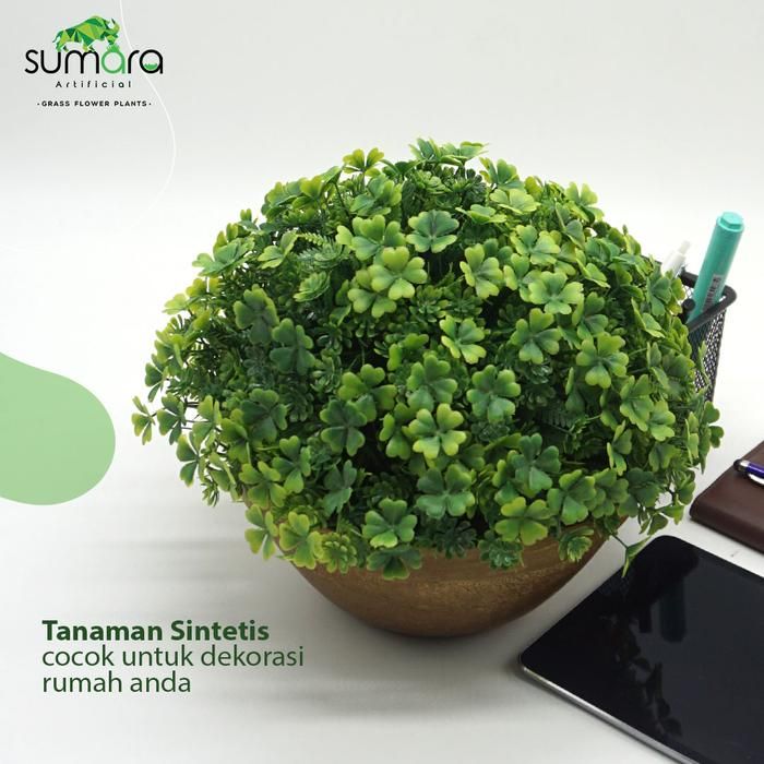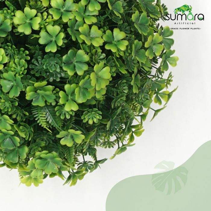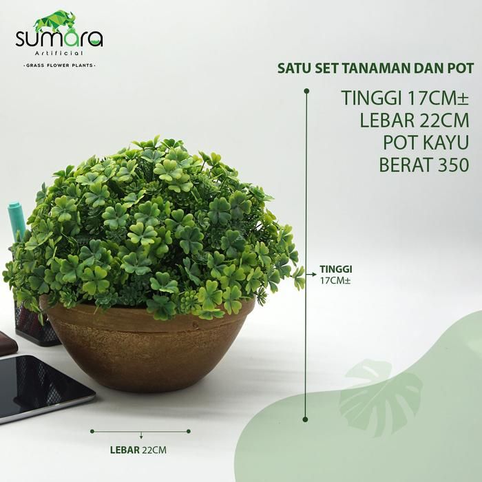Daun Semanggi Mix daun paku dll, Plastik/Palsu/Sintetis Pot Kayu