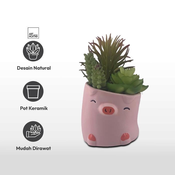ARTHOME TANAMAN ARTIFISIAL SUKULEN DENGAN POT ANIMA HOG