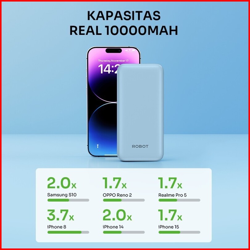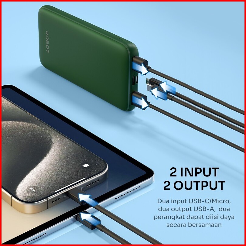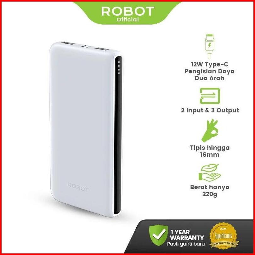 Robot Rt12 Rt-12 Powerbank 10000 Mah Dual Input Output Slim Original