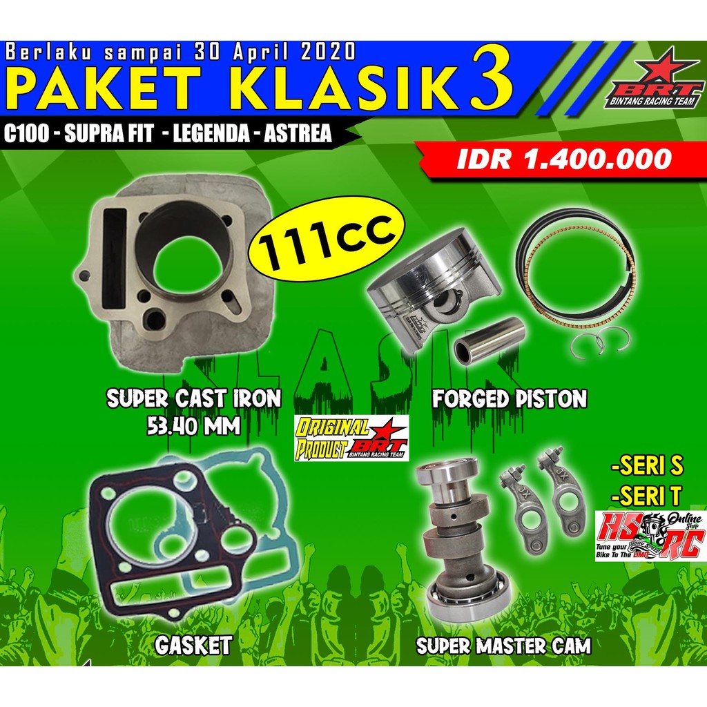 Paket Blok Kem Brt Honda Supra Fit X Grand Prima Legenda Win C100 Blok Cylinder Boring 53.4Mm Noken