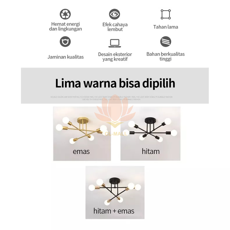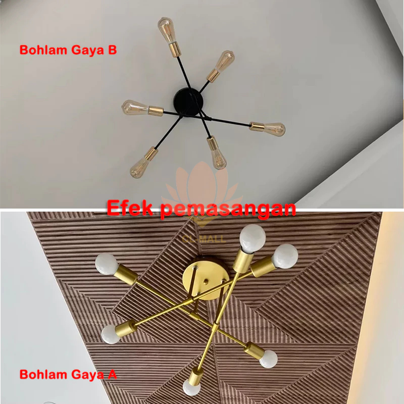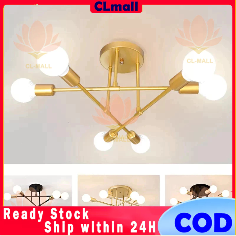 Lampu/Minimalis Langit -Langit/Lampu Gantung 6/8 Led E27 Industrial Bahan Besi Untuk Plafon R Tamu Modern Minimalist C