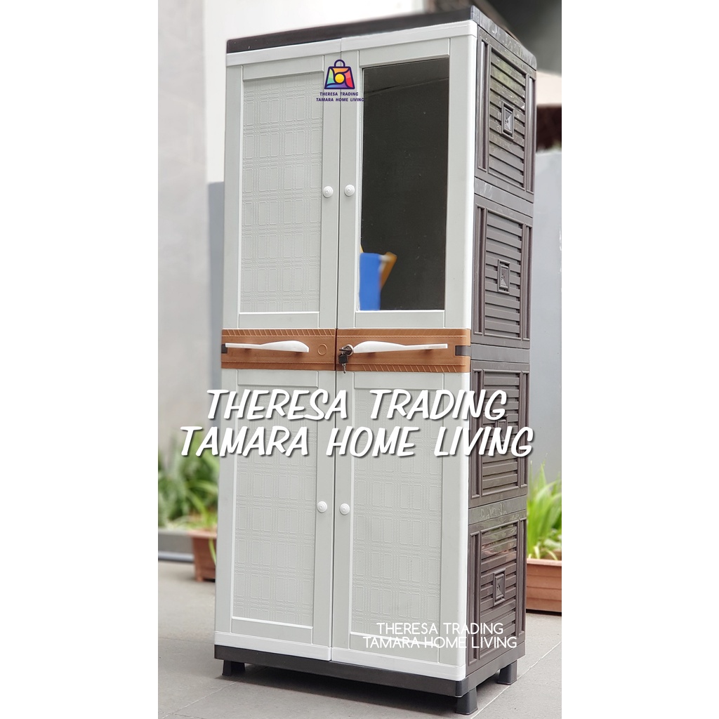 LEMARI PLASTIK CLUB GRAND COMPACT KACA 4 CERMIN SUSUN 4 DI LENGKAPI KUNCI PINTU LEMARI