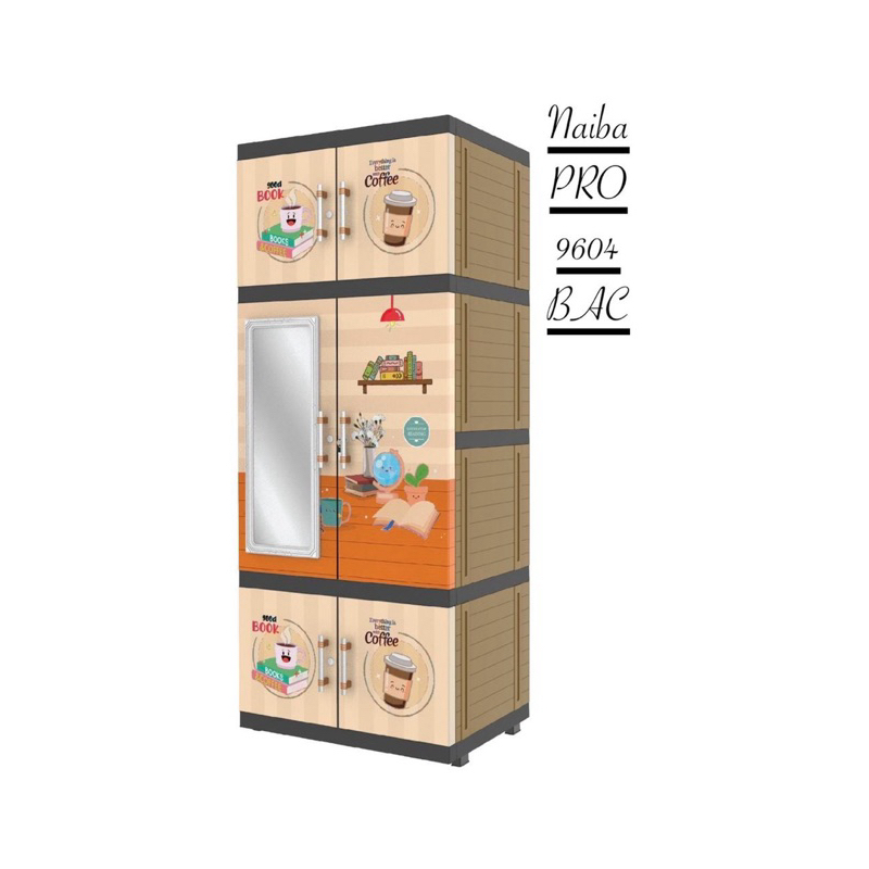 LEMARI PLASTIK NAIBA FIT 9524 EBONI CERMIN / LEMARI PAKAIAN SUSUN 4 JUMBO 9524