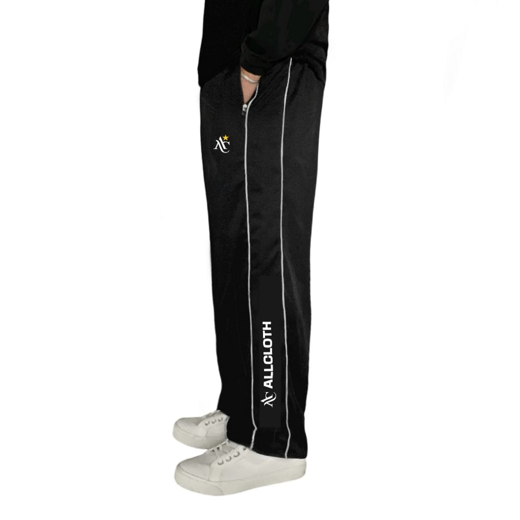 CELANA TRAINING HITAM PANJANG BAGGY TRACKPAND Garis Putih Uni Pria Wanita Loose Fit Adem & Nyaman di Pakai