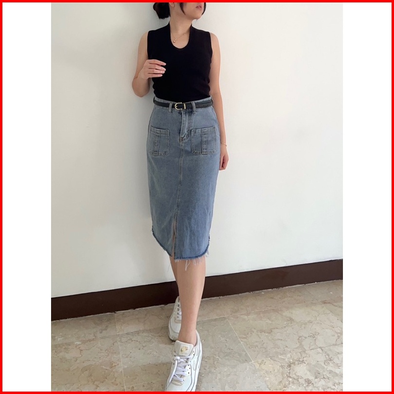 Klavee - Freya Denim Skirt Rok Denim Jeans Wanita Midi Korean Style Skirt