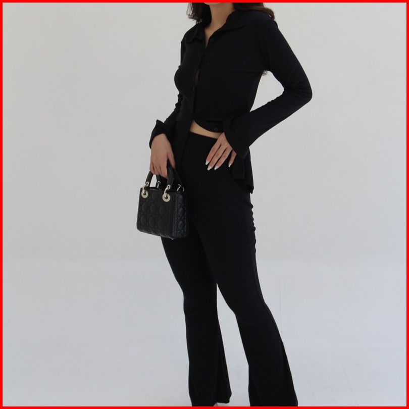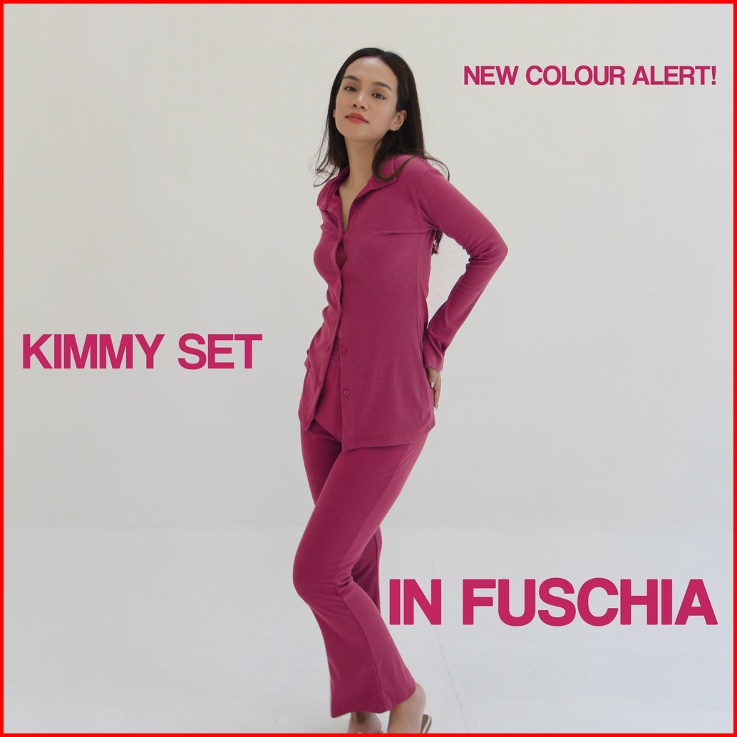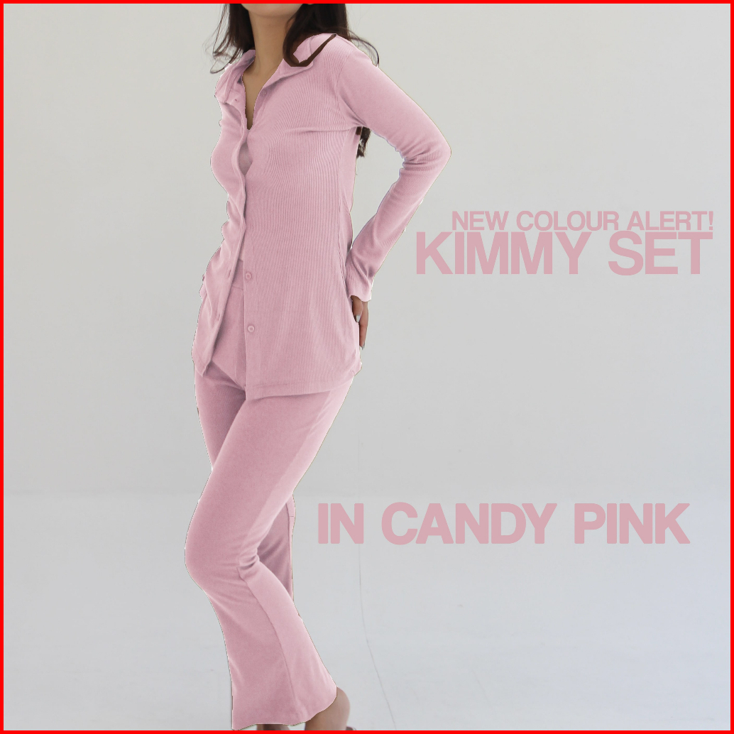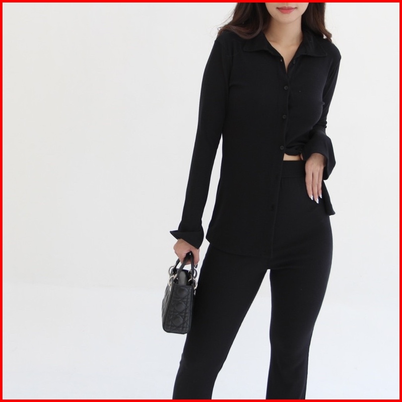 Kimmy Set Setelan Wanita Long Sleeves Oneset Knit Rib Premium Shirt Pants Baju Set Celana Highwaist Soma
