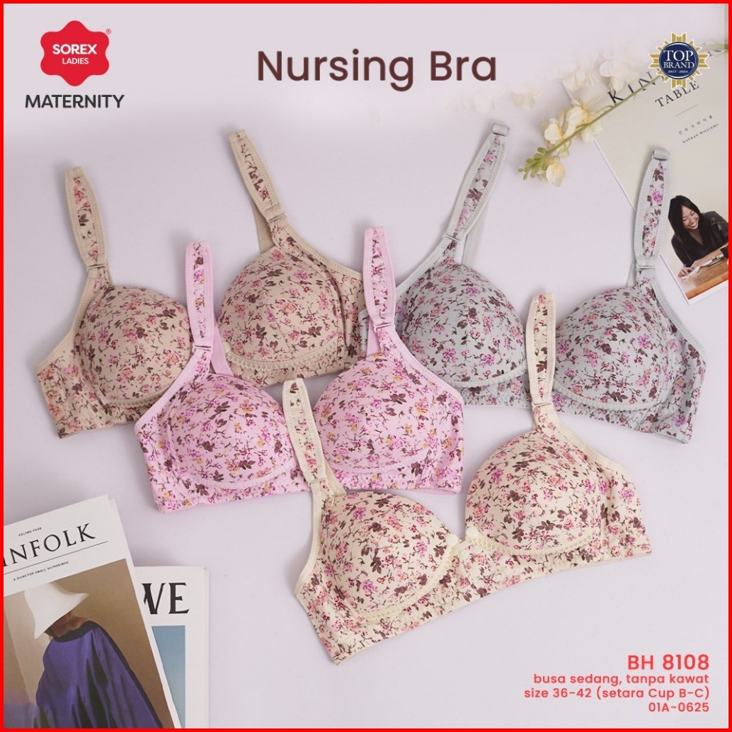 Sorex Bra Menyusui Motif Bunga Cantik Nursing Bra 8108 Tanpa Kawat Kait 3 Setara Cup B Busa Sedang