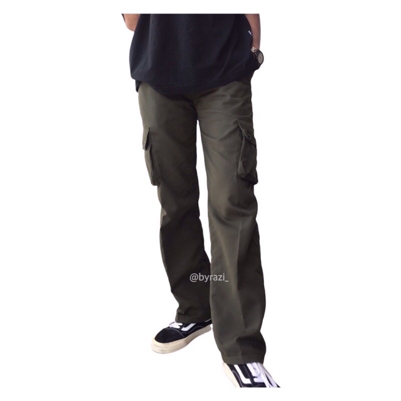 Celana Panjang Cargo Pria Polos Original Long Cargo Pants Material Cotton Premium Drill