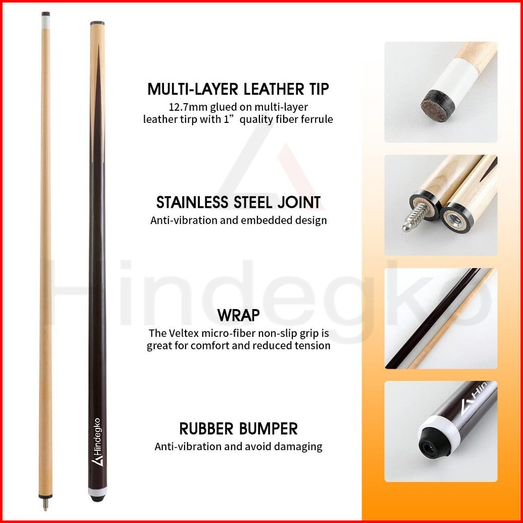 Hindegko 145cm Gaya Amerika Stick Billiard 13mm Stik Billiard Sambung 2 Kayu Putih Ramin Break Cue Billiard Untuk Sembil
