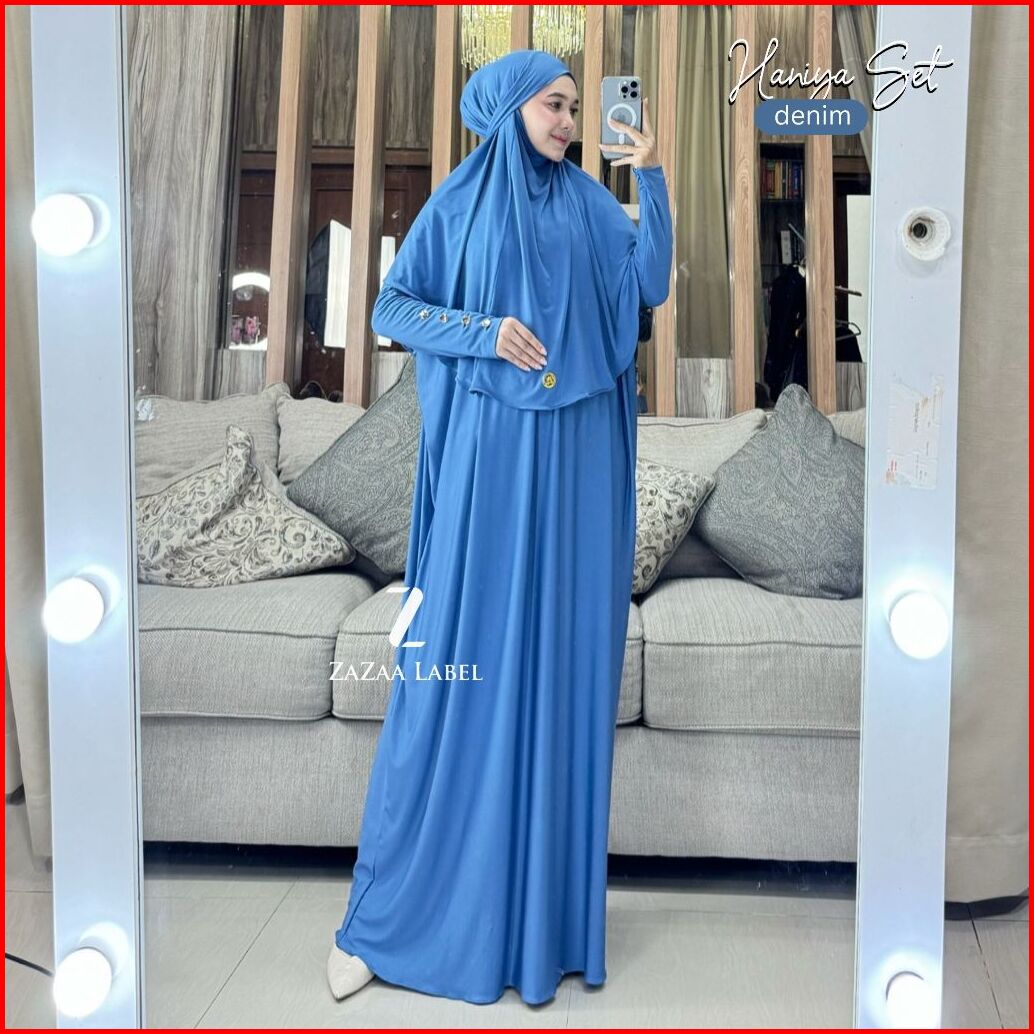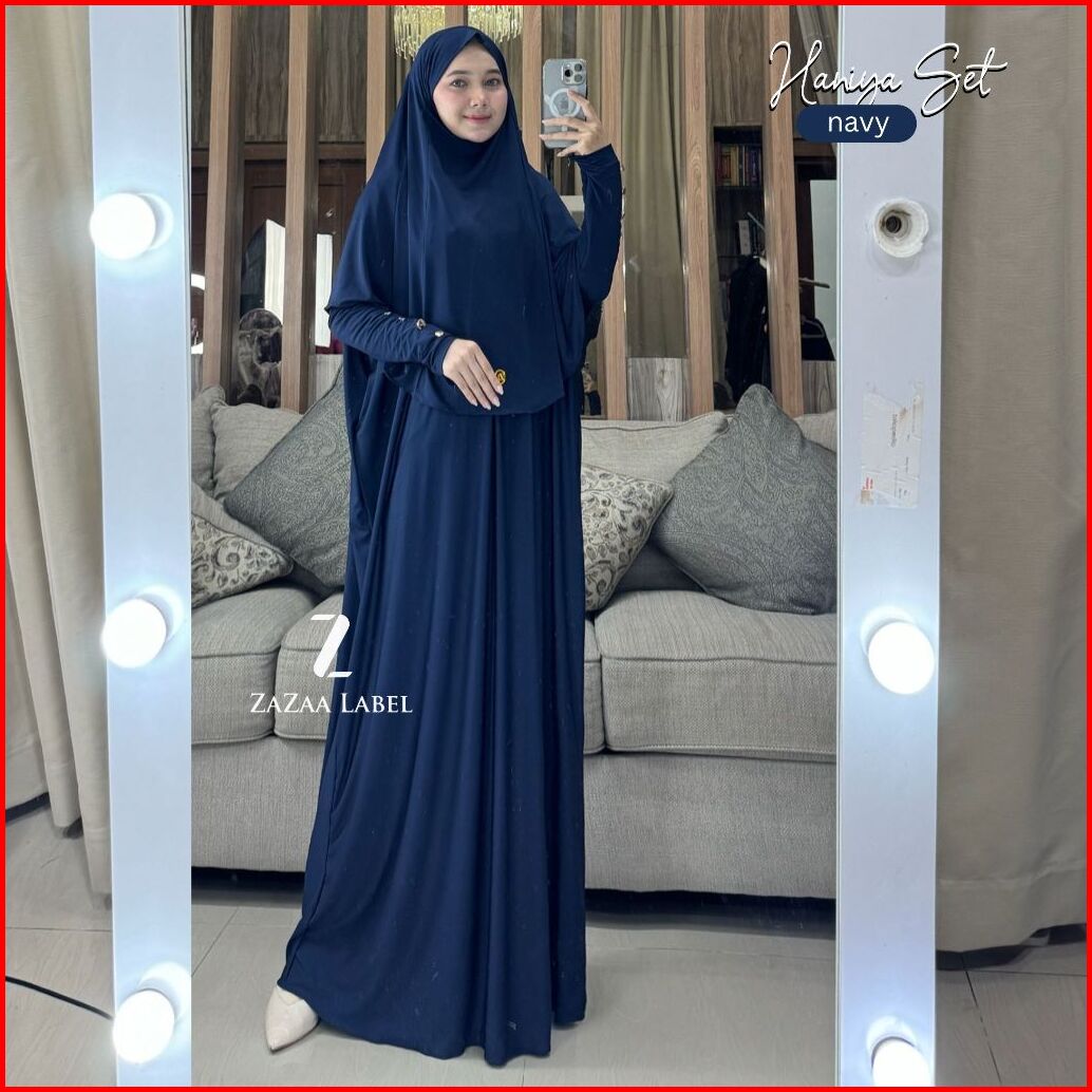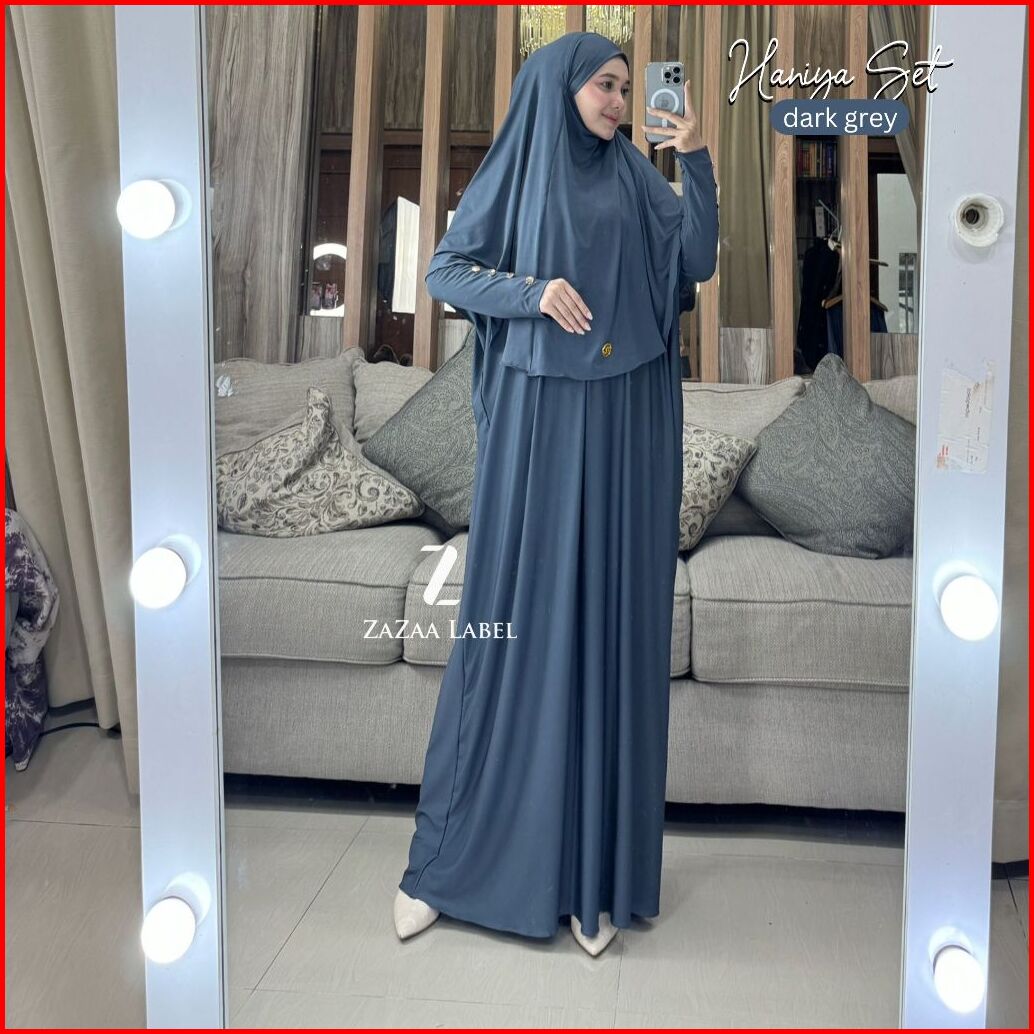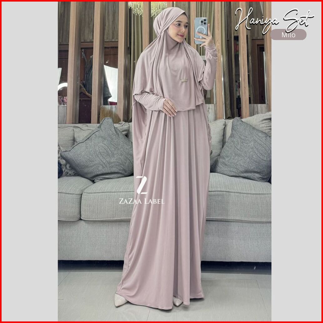 Zazaa Label-haniya Jersey Abaya Set Hijab Batwing Casual Wanita Busui Polos