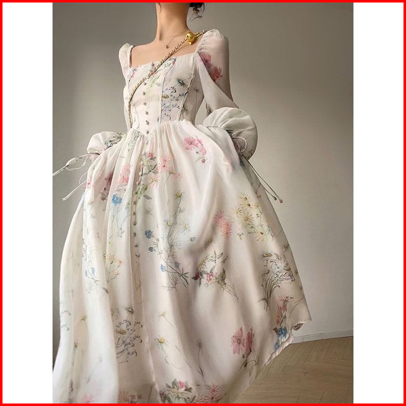 Susana Mall Dress Vintage Putih Kondangan Princess Gaun French Floral Putih Super Fairy M649