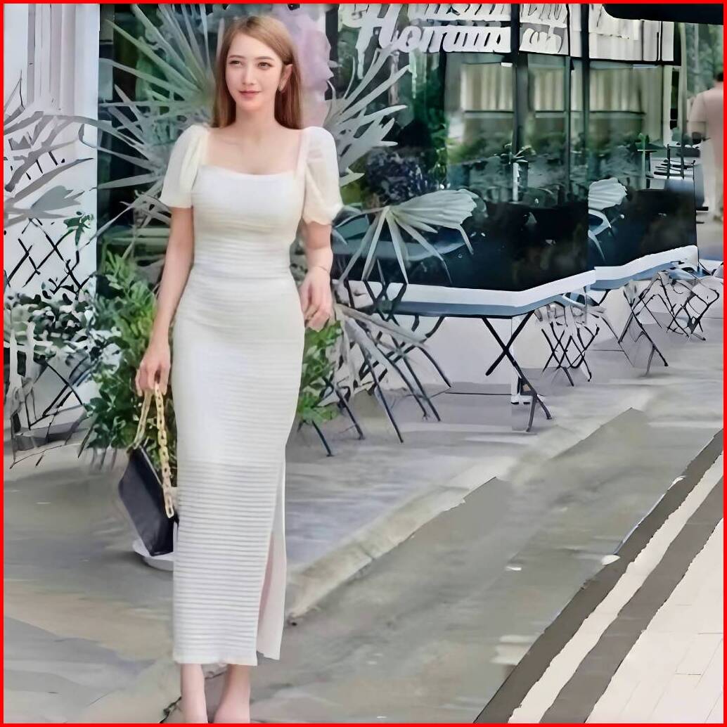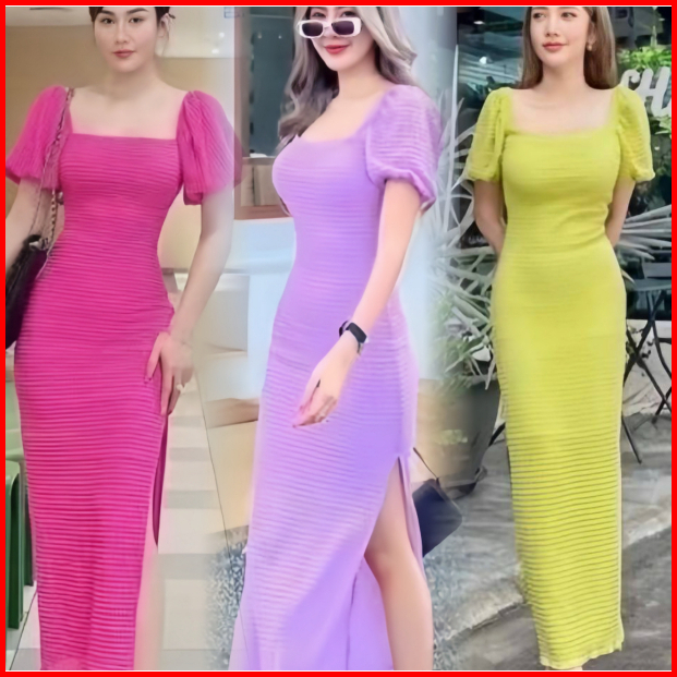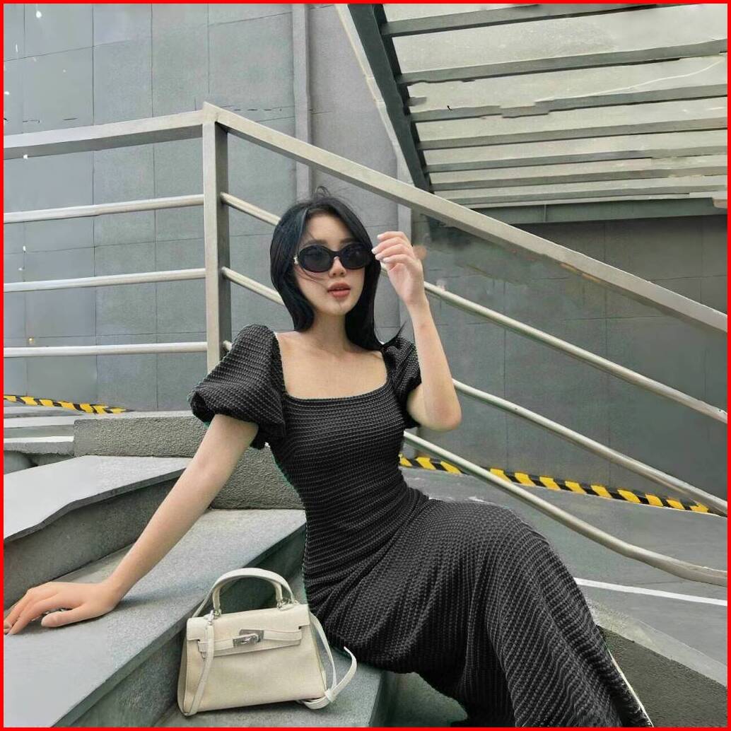Susana Mall 2025 Summer New Hot Style Solid Color Waist Hollow Grid Mesh Puff Sleeve Dress For Women M661