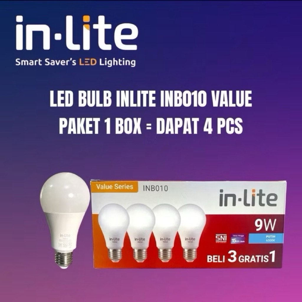 Lampu Inlite Bolam Led Paket 5W 7W 9W 12W 15W 18 Watt Paket Hemat Beli 3 Gratis 1