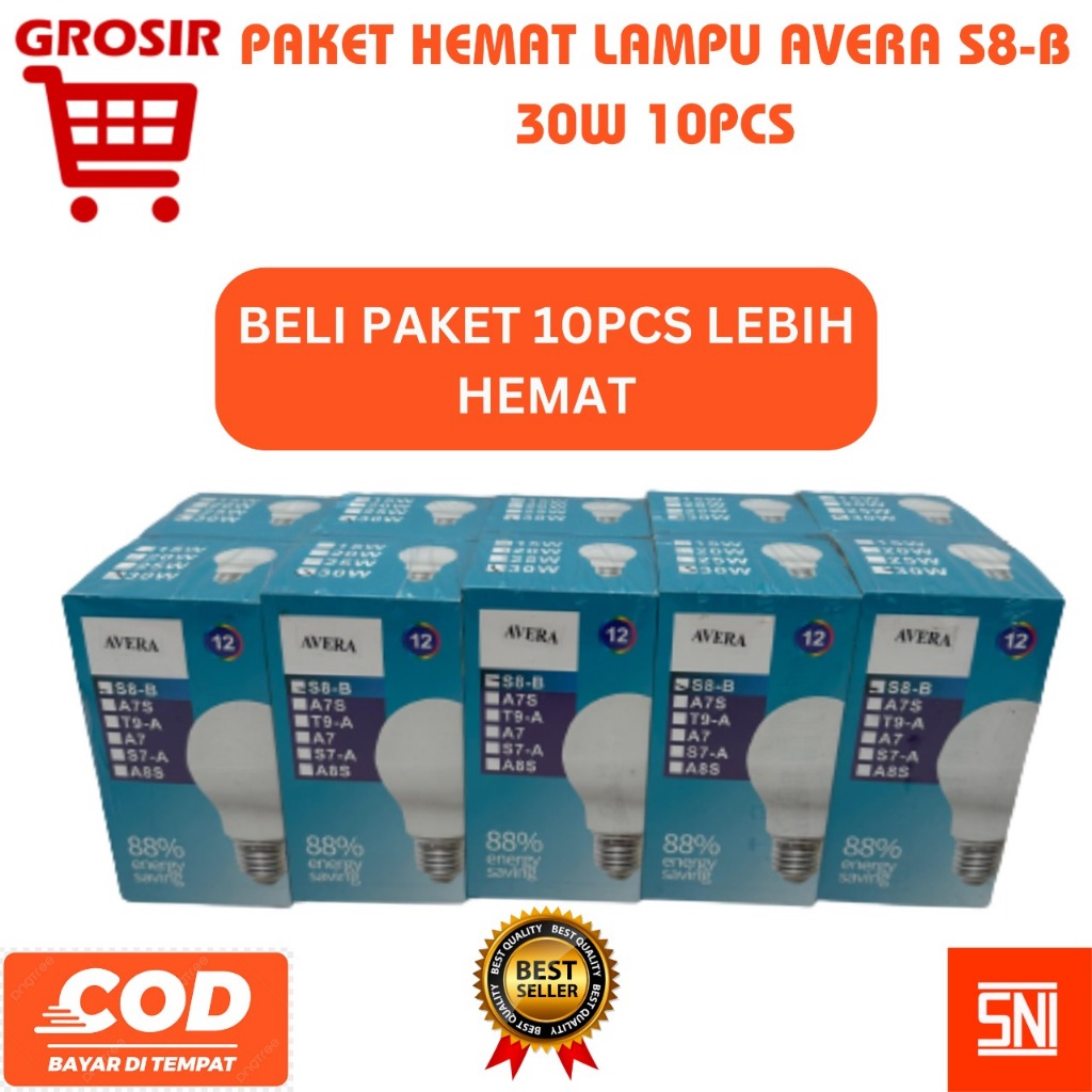 Paket Hemat Lampu Led Bohlam 10Pcs Avera S8-B Type 5 W / 10W / 15W / 20W / 30W Led Bulb / Lampu