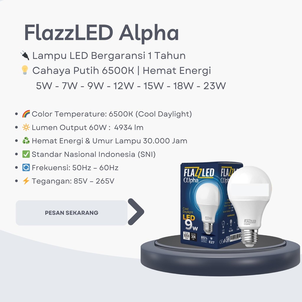 Lampu Led Bergaransi 1 Tahun Flazzled Alpha 5W 7W 9W 12W 15W 18W 23Wat Bohlam Putih Low Voltase E27