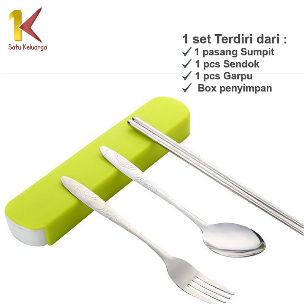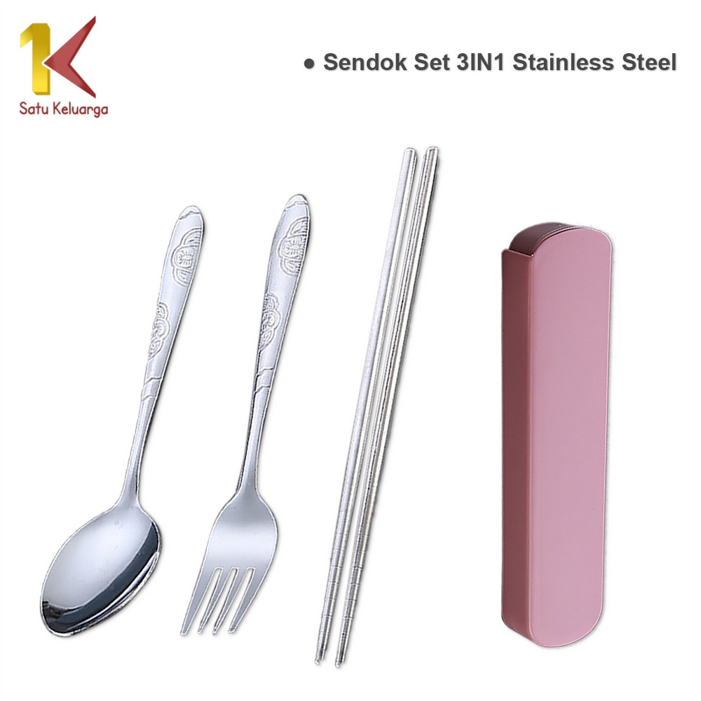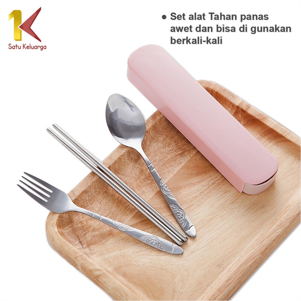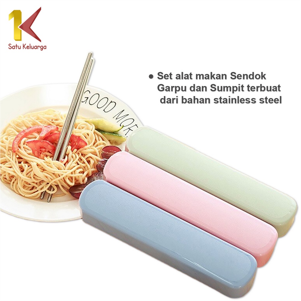 NUZ Satu Keluarga Sendok Set 3IN1 C495 Alat Makan Sendok Garpu Sumpit Set Stainless Steel Portable Dengan Kotak Praktis