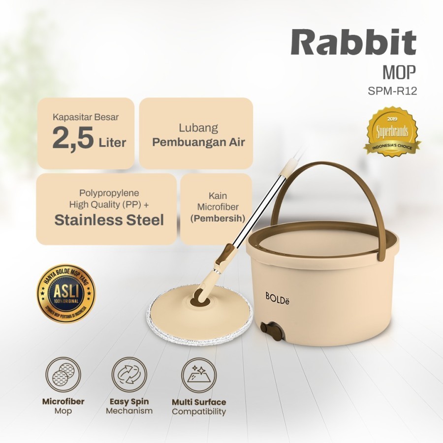 Alat Pel Bolde Supermop RABBIT Air Bersih Kotor Terpisah Spinmop Ember Pel Otomatis Floor Cleaner