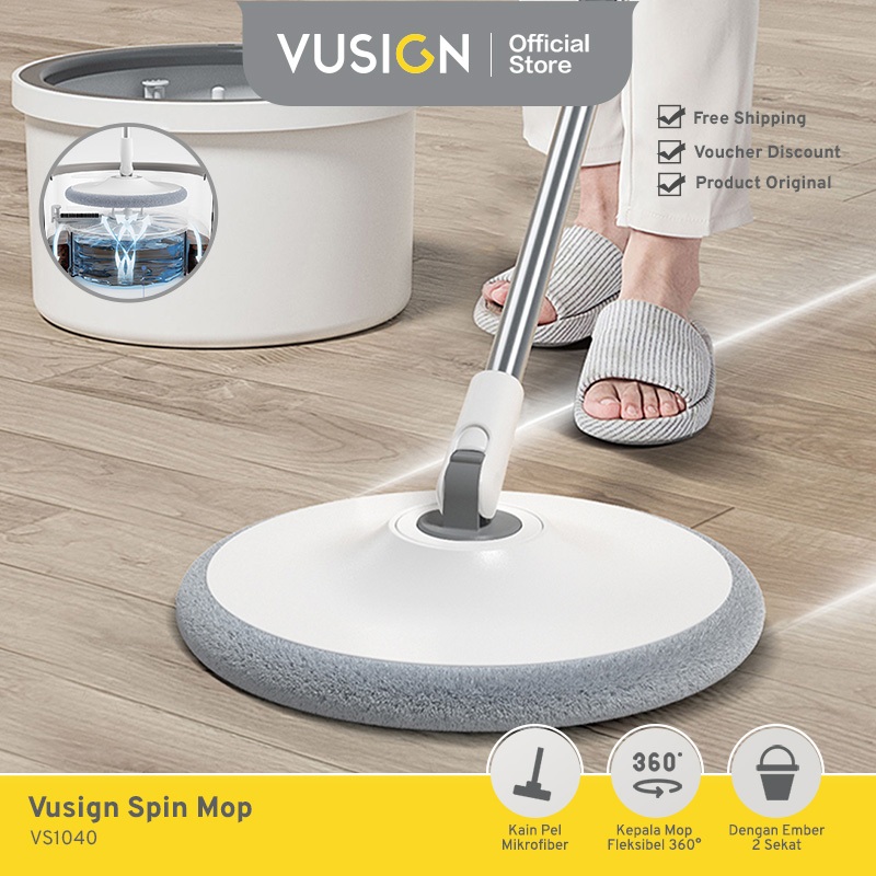 Vusign Round Spin Mop / Alat Pel Lantai Putar otomatis Tanpa Peras Pemisah Air Kotor VS1040X