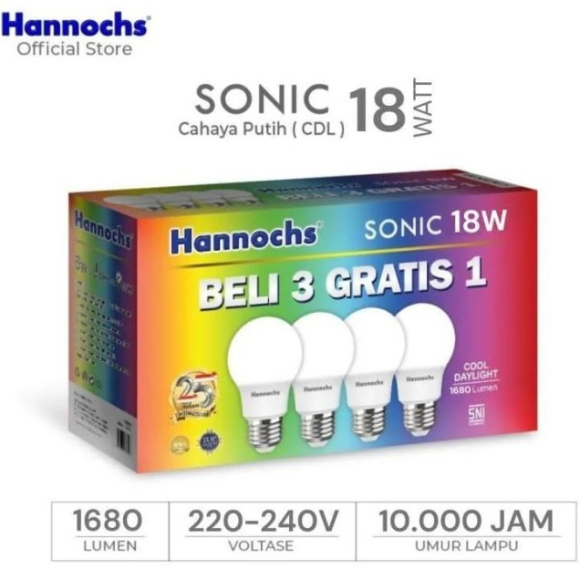 Hannochs Sonic Paket 3 In 1 Bohlam Lampu Led 3-6-10-13-18 Watt Cool Daylight Putih Beli 3 Bonus 1