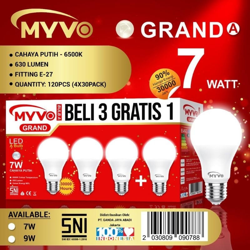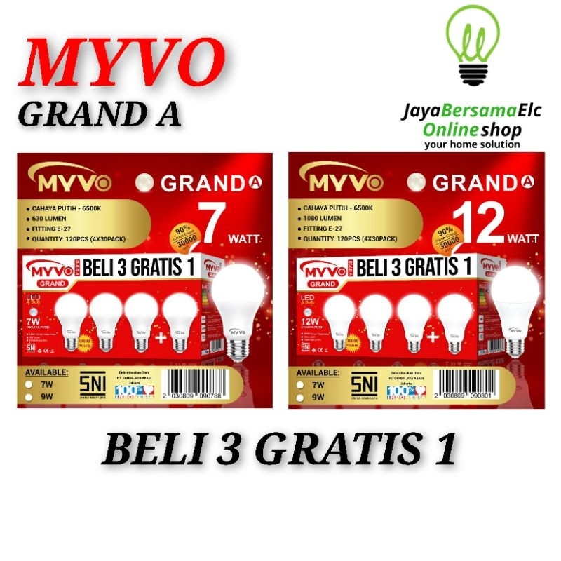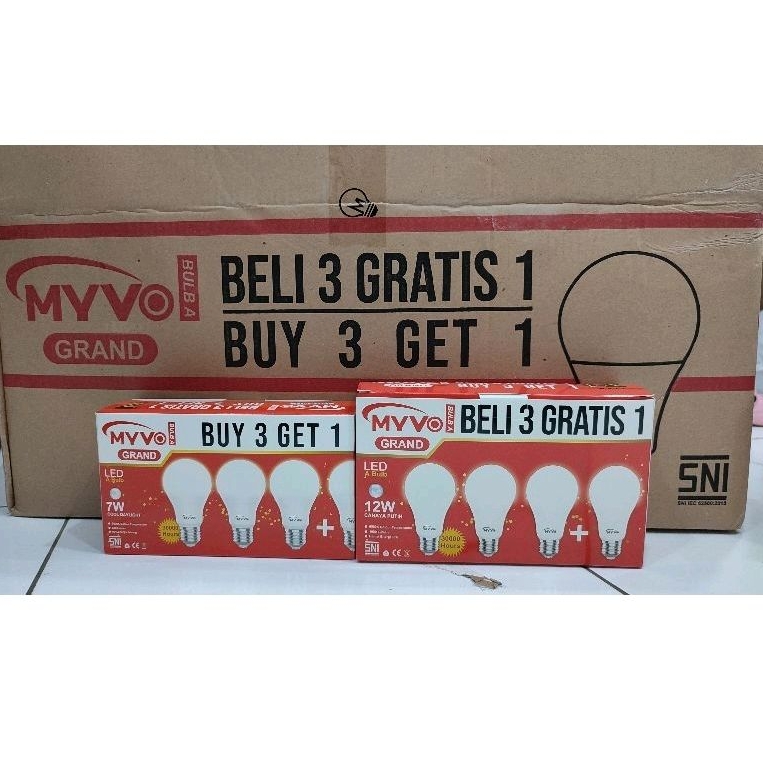 Lampu Led Bohlam Paket Hemat (Beli 3 Gratis 1) Myvo 7W / 12 Watt Sni