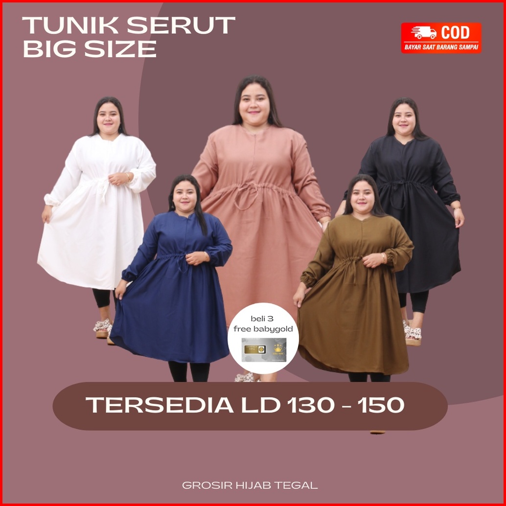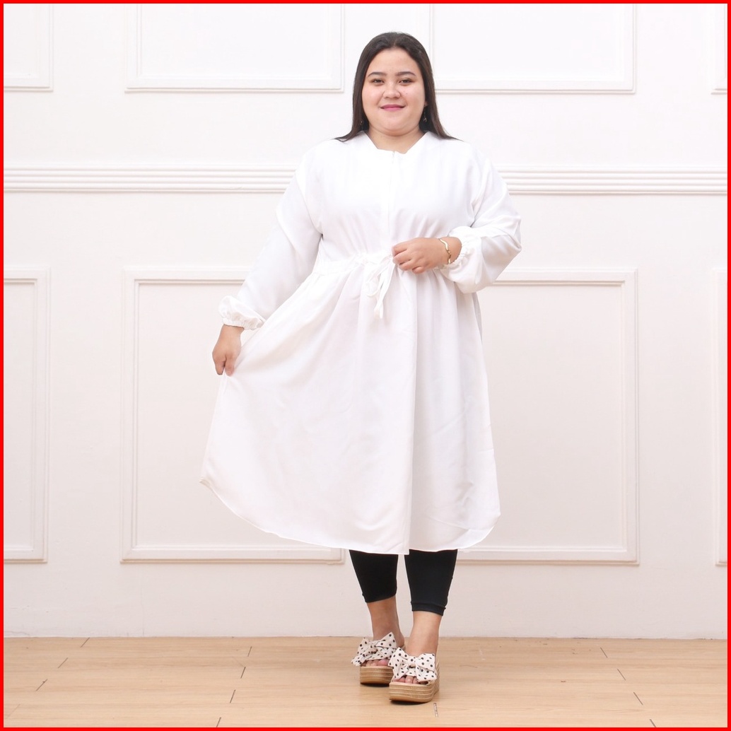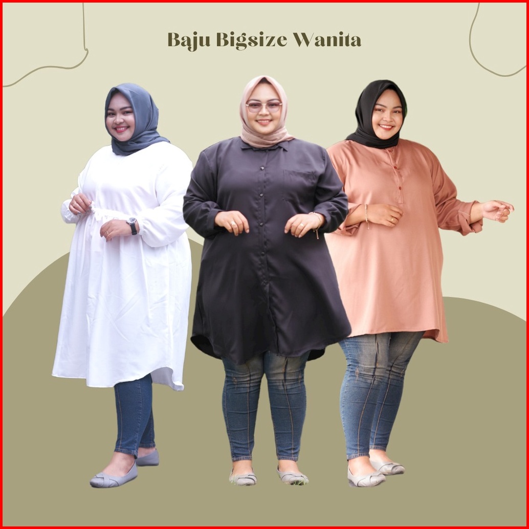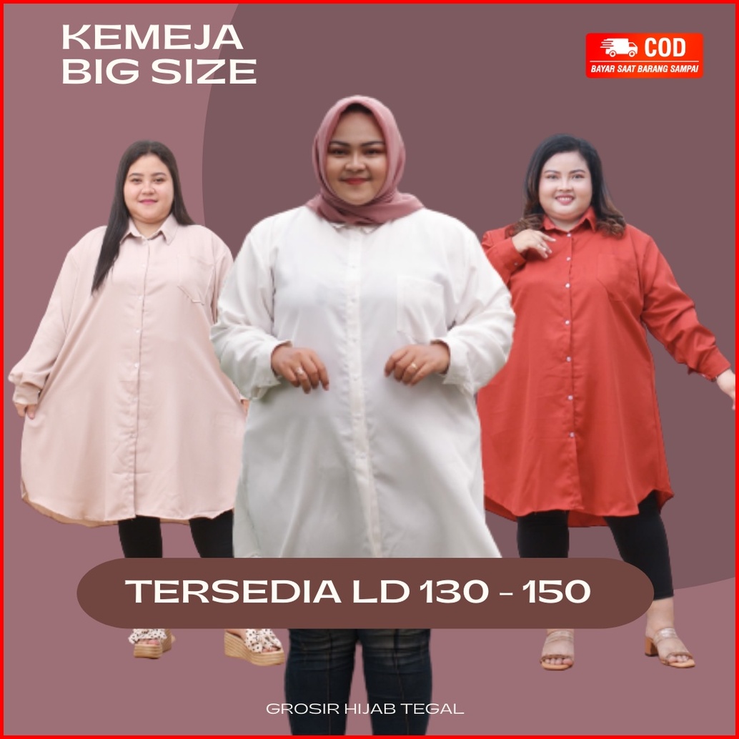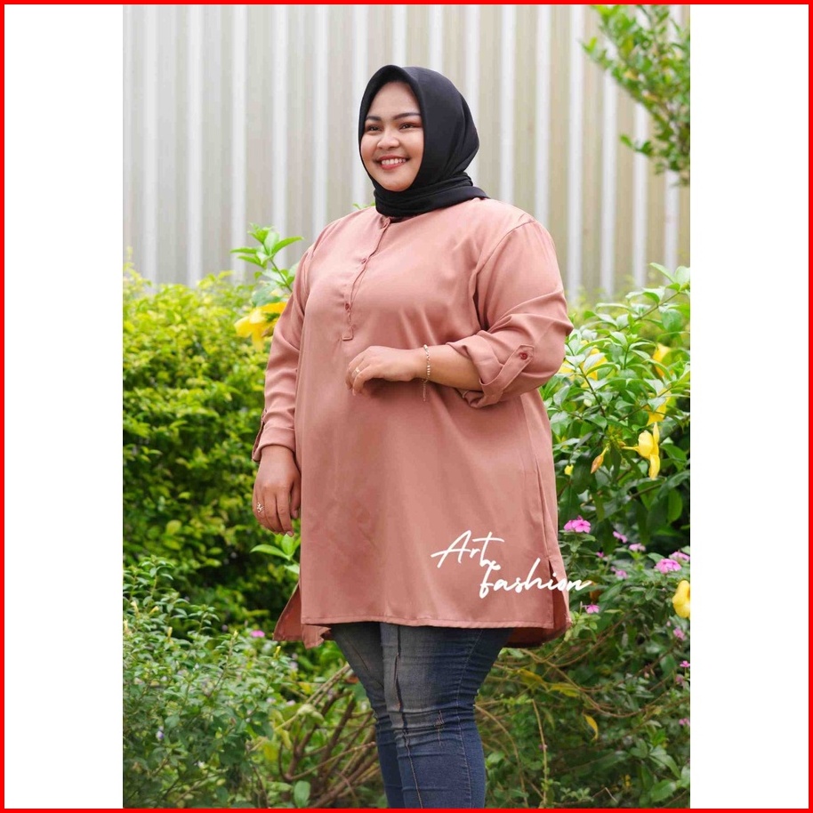 Atasan Wanita Tunik Kemeja Jumbo Big Size Full Kancing Lengan Panjang Premium Ld 130 140 150 Syafla Cloth