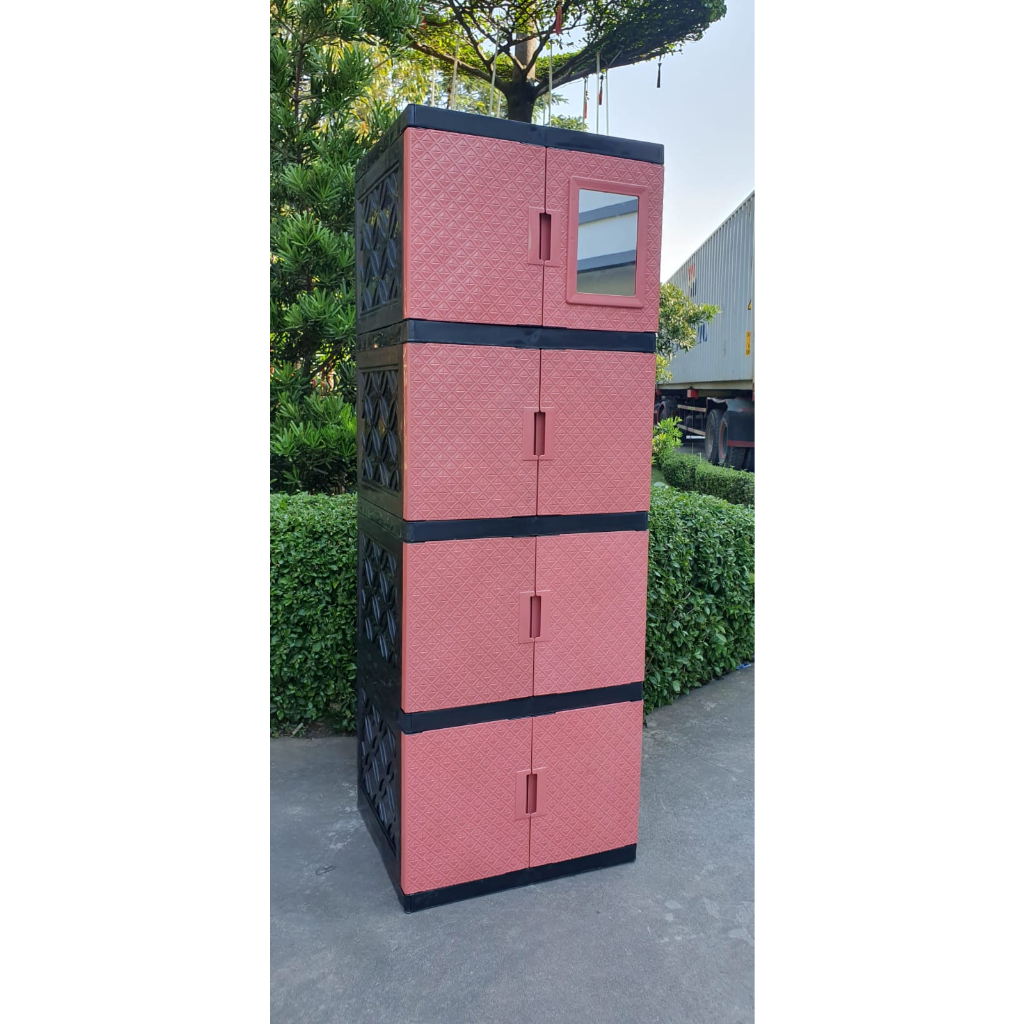 AKAKO - Lemari Akako Kaca Bilpin Jumbo Baby Pakaian Plastik Serbaguna 2 Pintu Susun 2, 3, 4, dan 5 Motif BERLIAN / Lemar