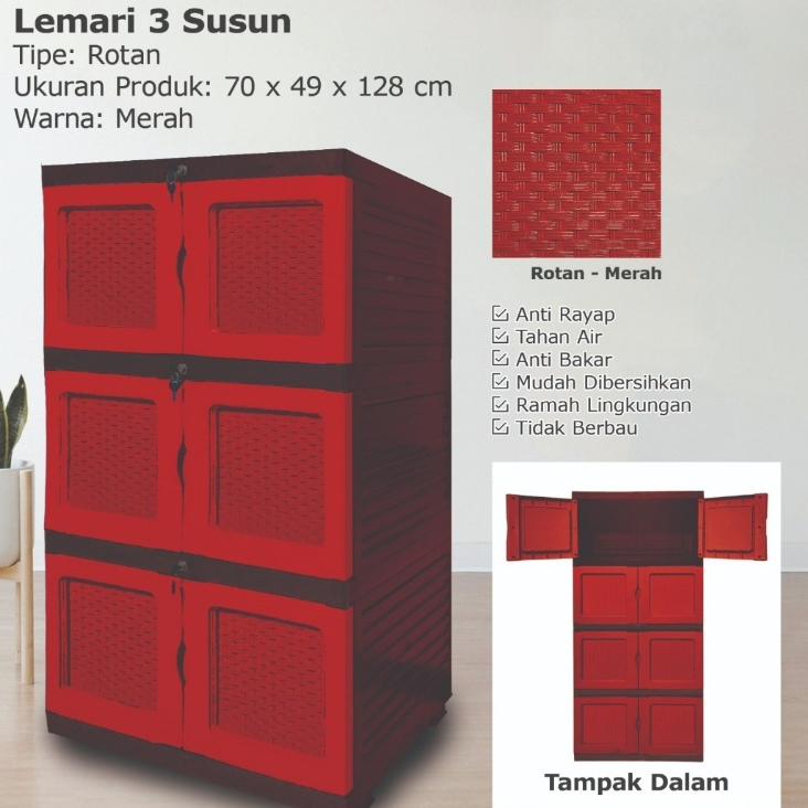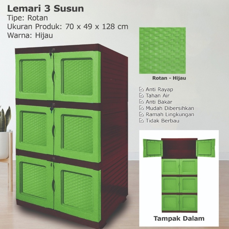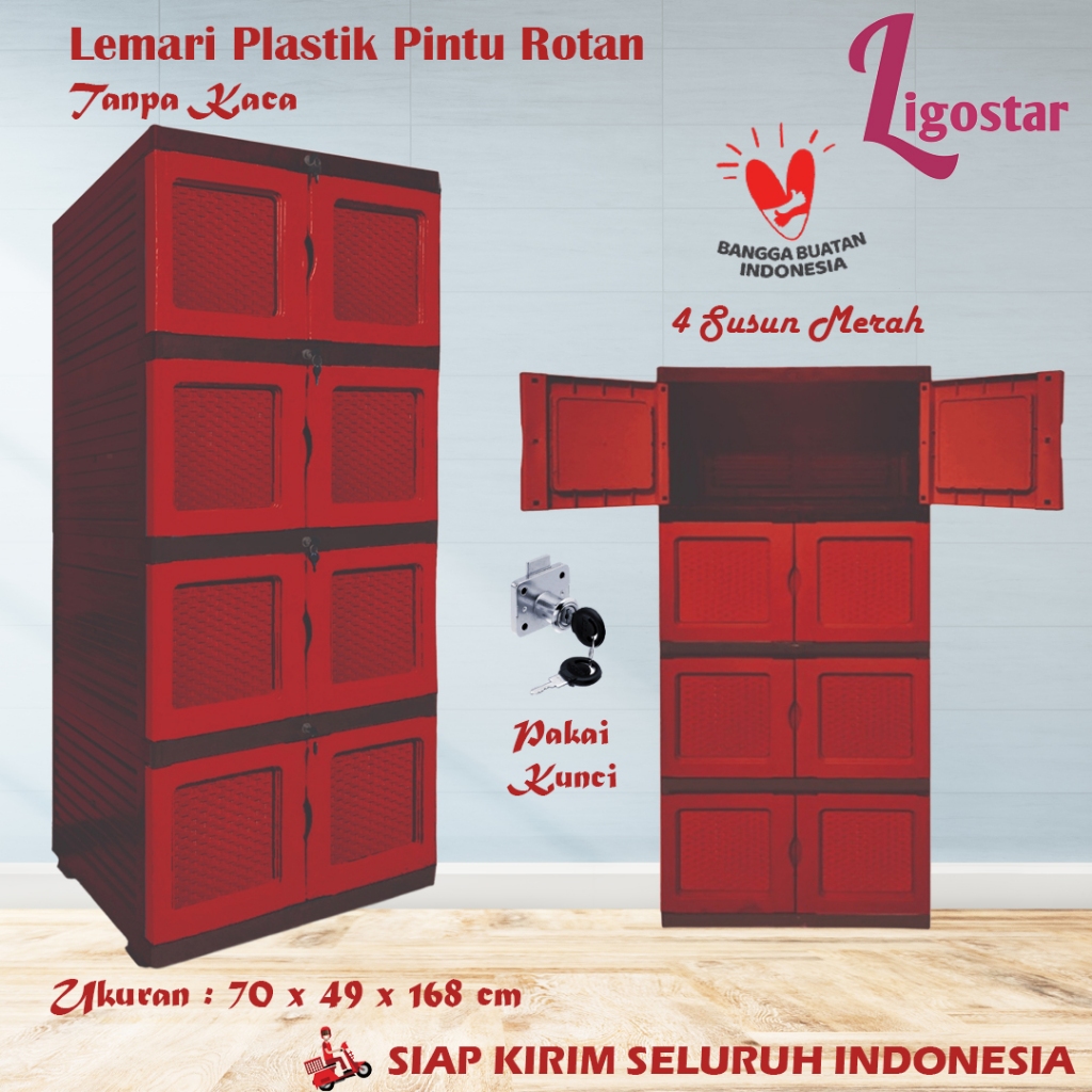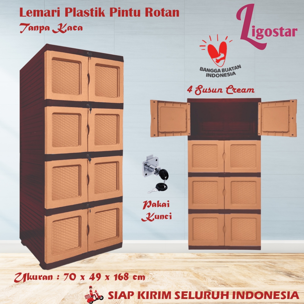 Lemari Plastik JUMBO 4 Susun dan 3 Susun Motif Rotan 4 Warna Serbaguna Penyimpanan Barang Baju Berkualitas