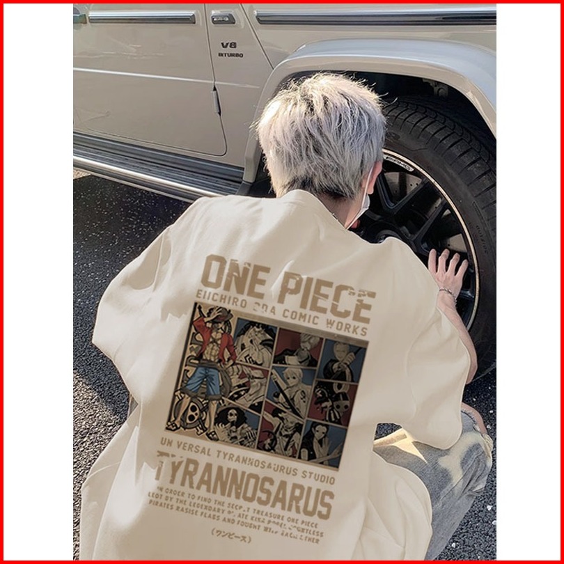 Auzy Jepang Kartun One Piece Luffy Anak Topi Jerami Kaos Pria Wanita Atasan Lengan Pendek T-shirt Skena Baju Oversize T
