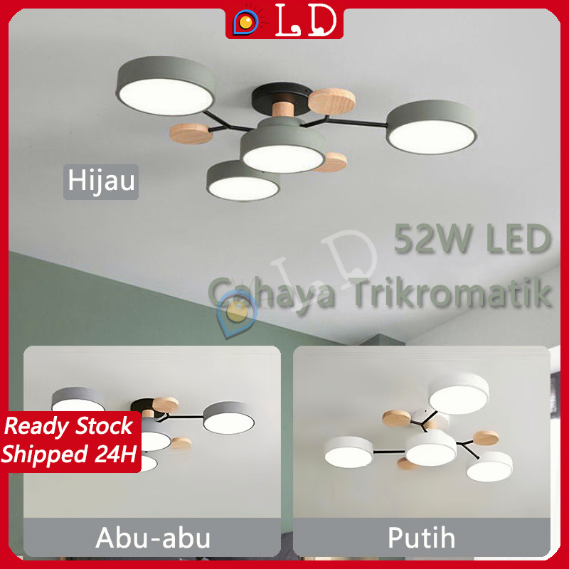 3 Warna 48W Lampu Gantung Led Nordic Modern Minimalis Gaya Lampu Gantung Lampu Langit-Langit/Lampu Gantung Led Termasuk