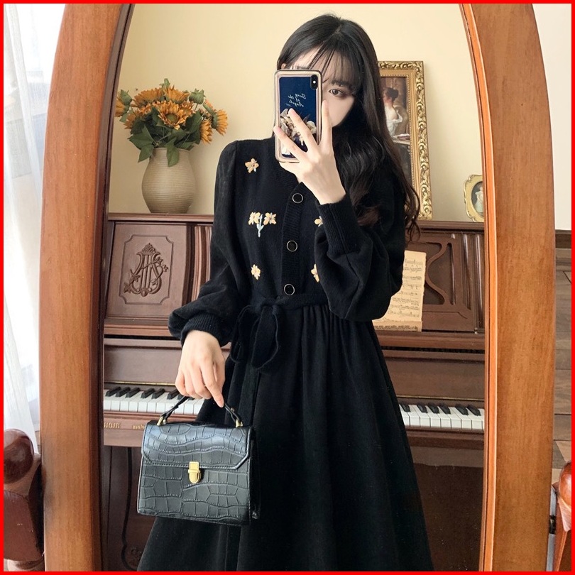 Susana Id Vintage Corduroy Dress With Floral Embroidery B012d