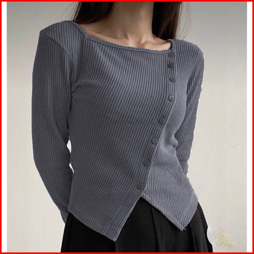 March Blouse Korea - Atasan Wanita Kancing - Cricia Blouse Knit Rib Korean Style