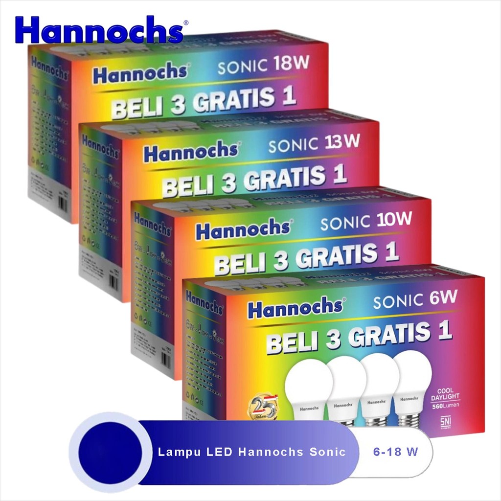 Hannochs Sonic Multipack Paket Lampu Led Hannochs 6, 10, 13, 18 Watt Beli 3 Gratis 1