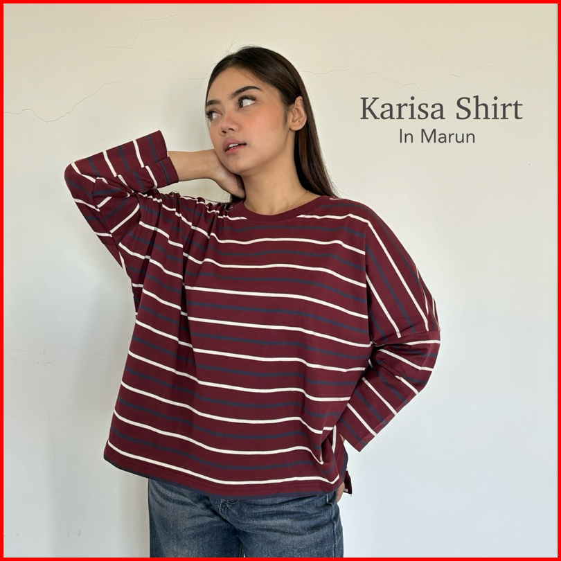Plumfit Kaos Wanita Oversize Motif Garis Matterial Cotton Combed Karisa Shirt