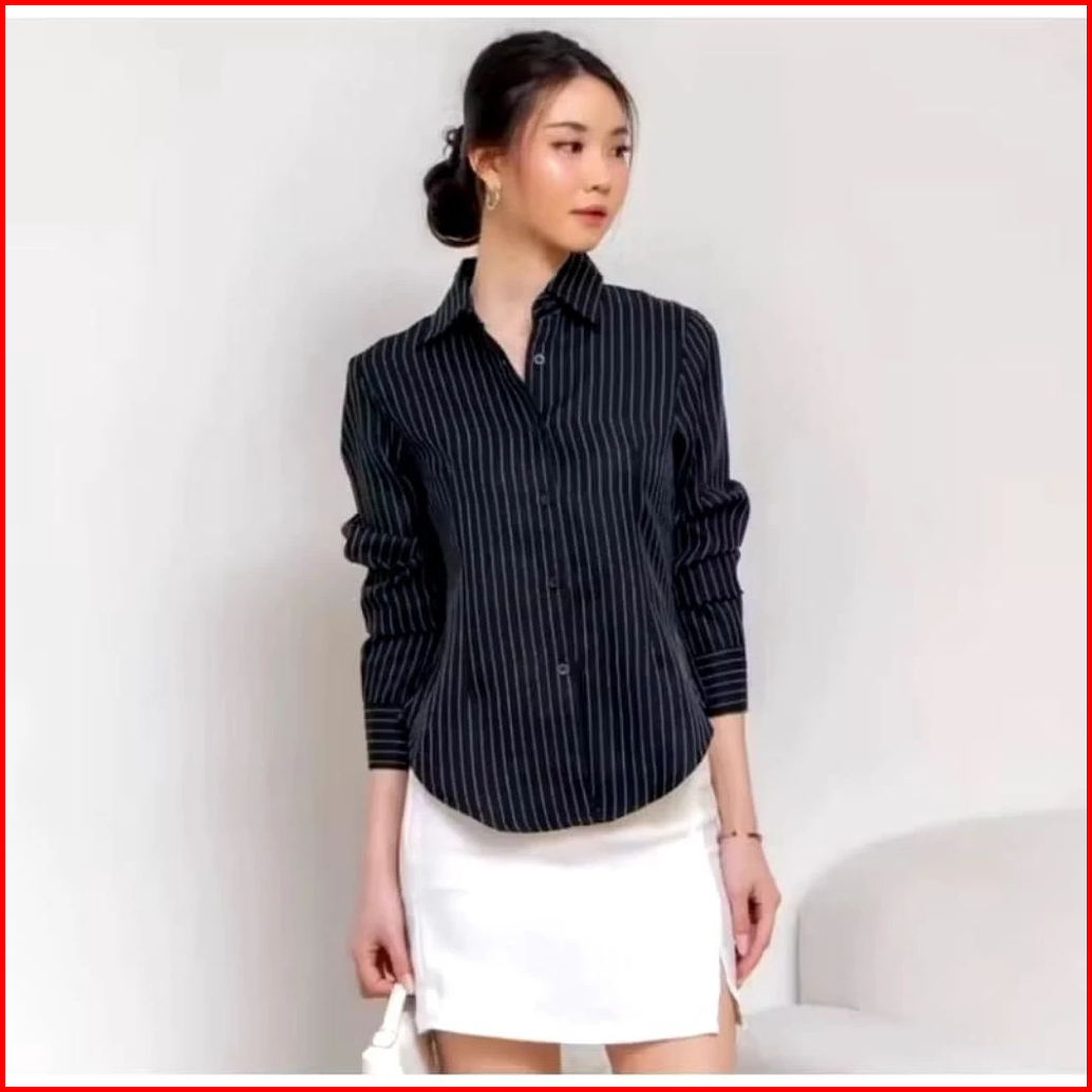 Kemeja Wanita Fitted Luna Stripe Atasan Salur Korean Style Terbaru