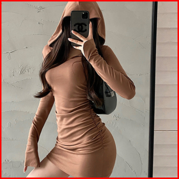Long Sleeve Bodycon Hoodie Mini Dress 1727 S M L Xl