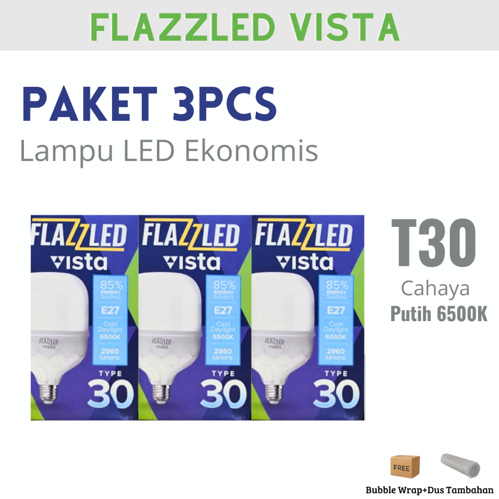 Flazzled Vista Paket 3 Pcs Lampu Led Bohlam Capsule Jumbo T20 T30 T40 T50 Hemat Energi Sni - Putih