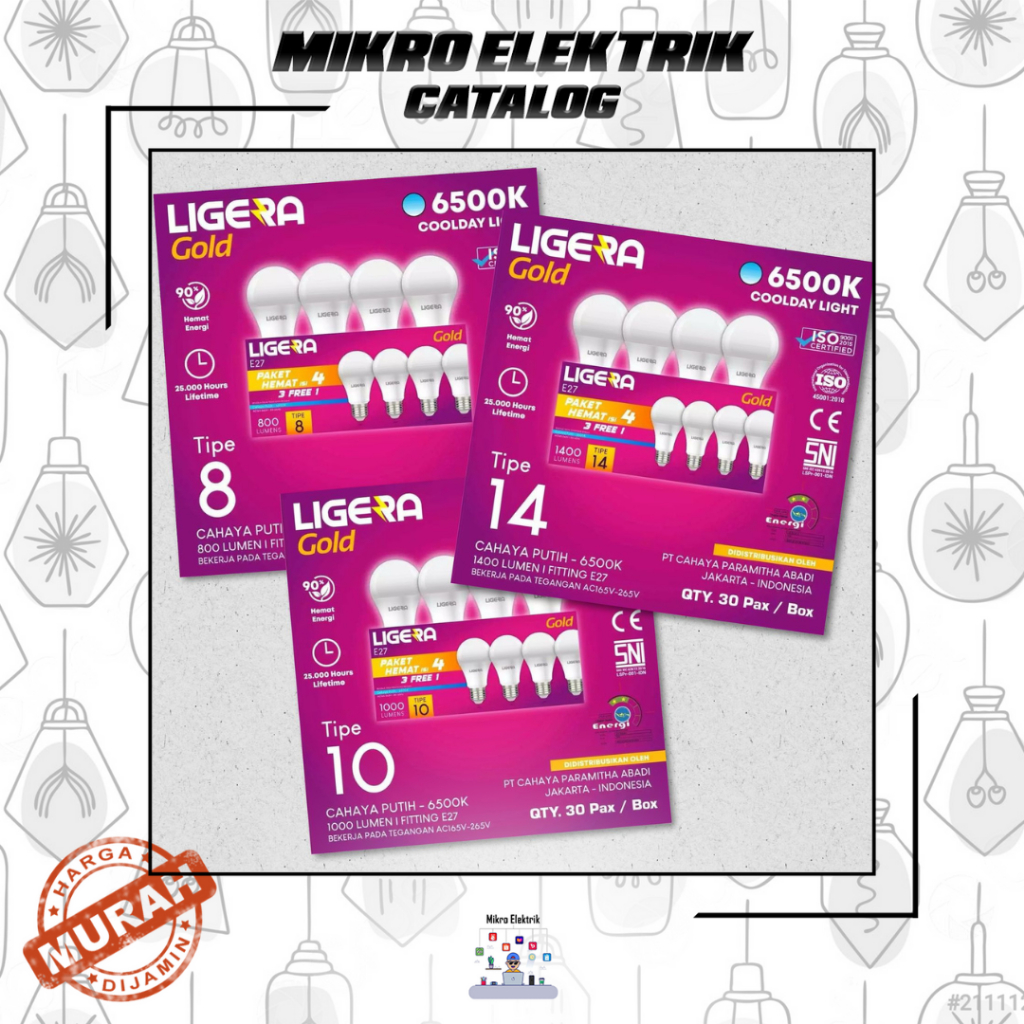 Lampu Led Ligera Paket (4Pcs) Cahaya Putih