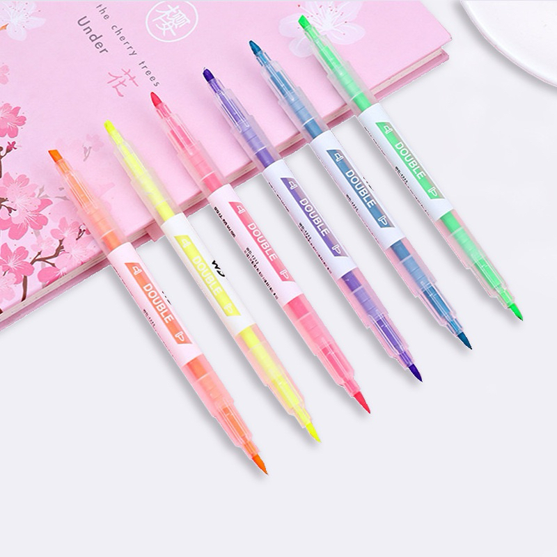 ( 1 Set isi 6 pcs ) Stabilo 2 sisi Pastel Highlighter spidol pen Warna Marker Diary