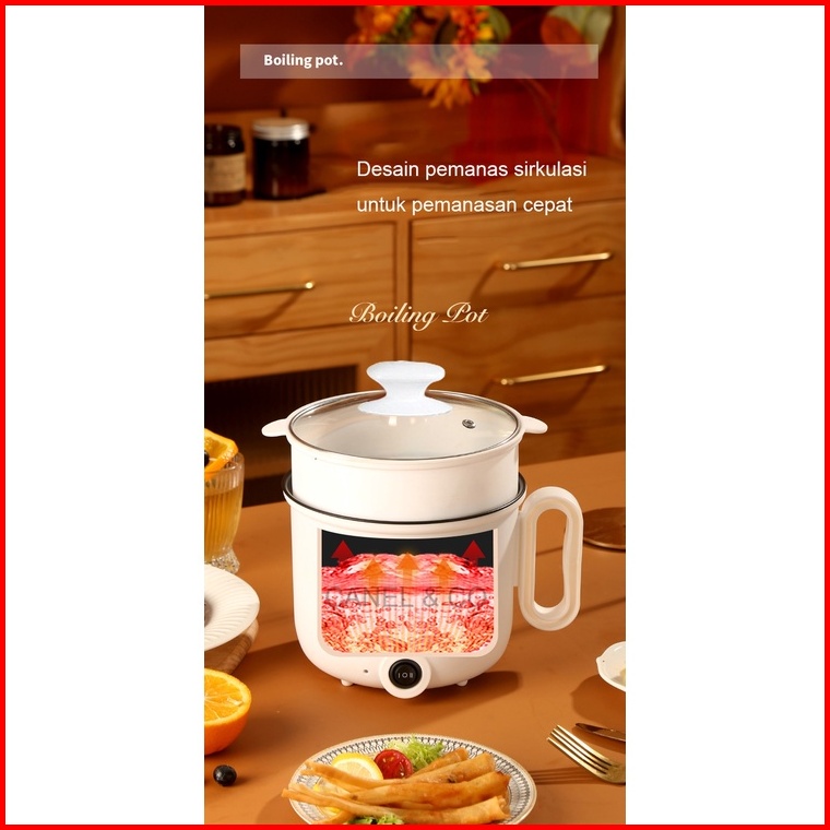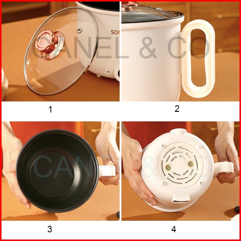 Canel Co Panci Listrik Multifungsi 600 Watt Free Kukusan Mini Rice Cooker Lapisan Teflon