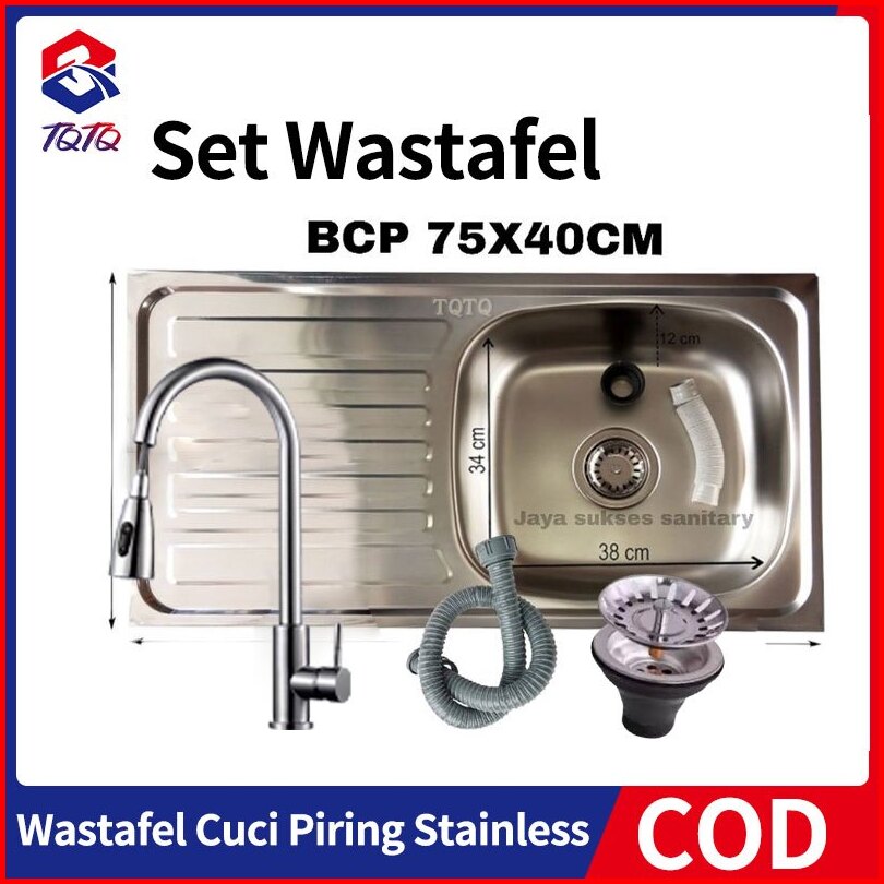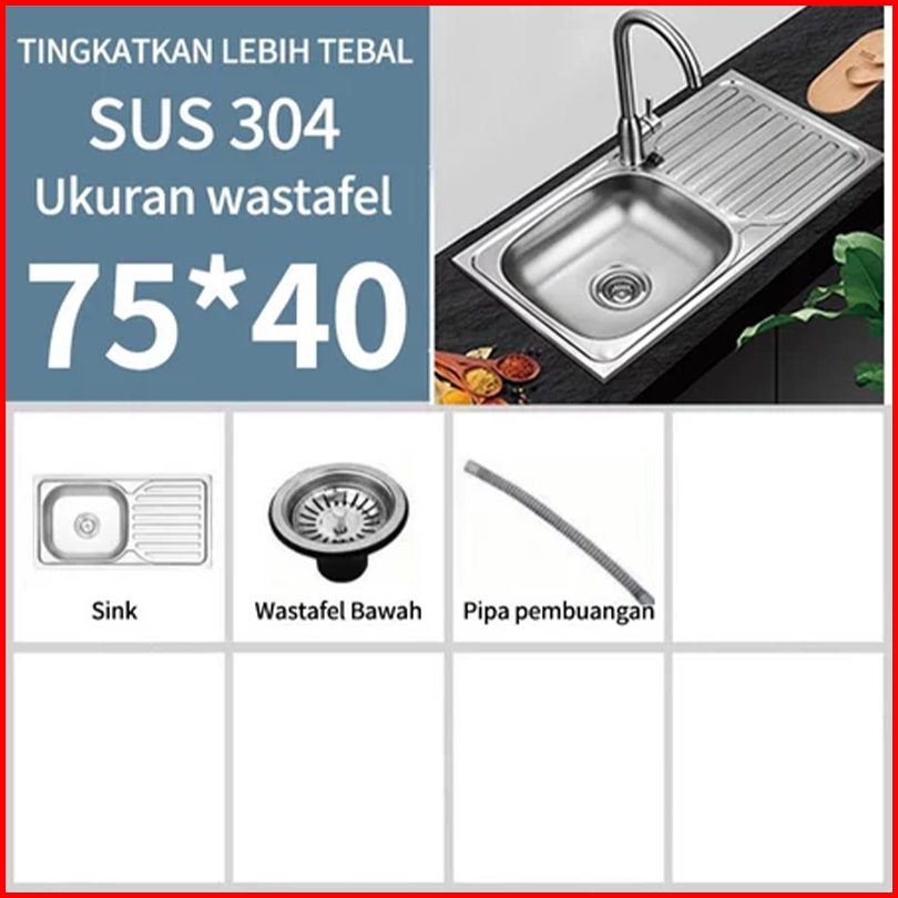 Tqtq Bak Wastafel Cuci Piring Stainless 75 X 40 Cm Dapur Satu Lubang Kitchen Sink Set Lengkap