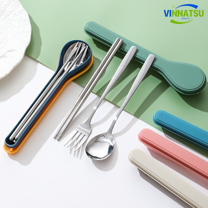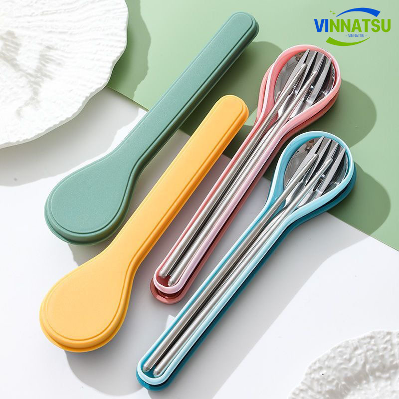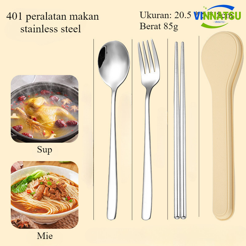 Vinnatsu 4PCS Garpu Sendok Sumpit Sendok Garpu Set Alat Sendok Garpu Sumpit Set Paket Alat Makan Set Makan Travel Portab