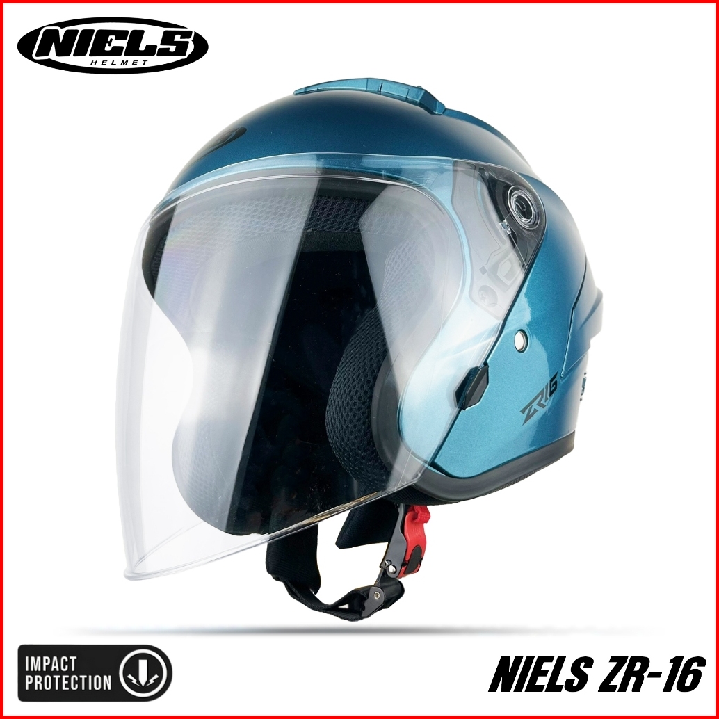 Niels - Helm Half Face Zr16 Visor Bening Dewasa Sni Motorcycle