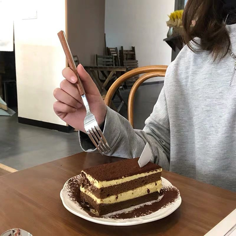 1 pc Sendok Garpu p1sau Makan Stainless Peralatan Makan Dengan Pegangan Kayu Serbaguna - HW112