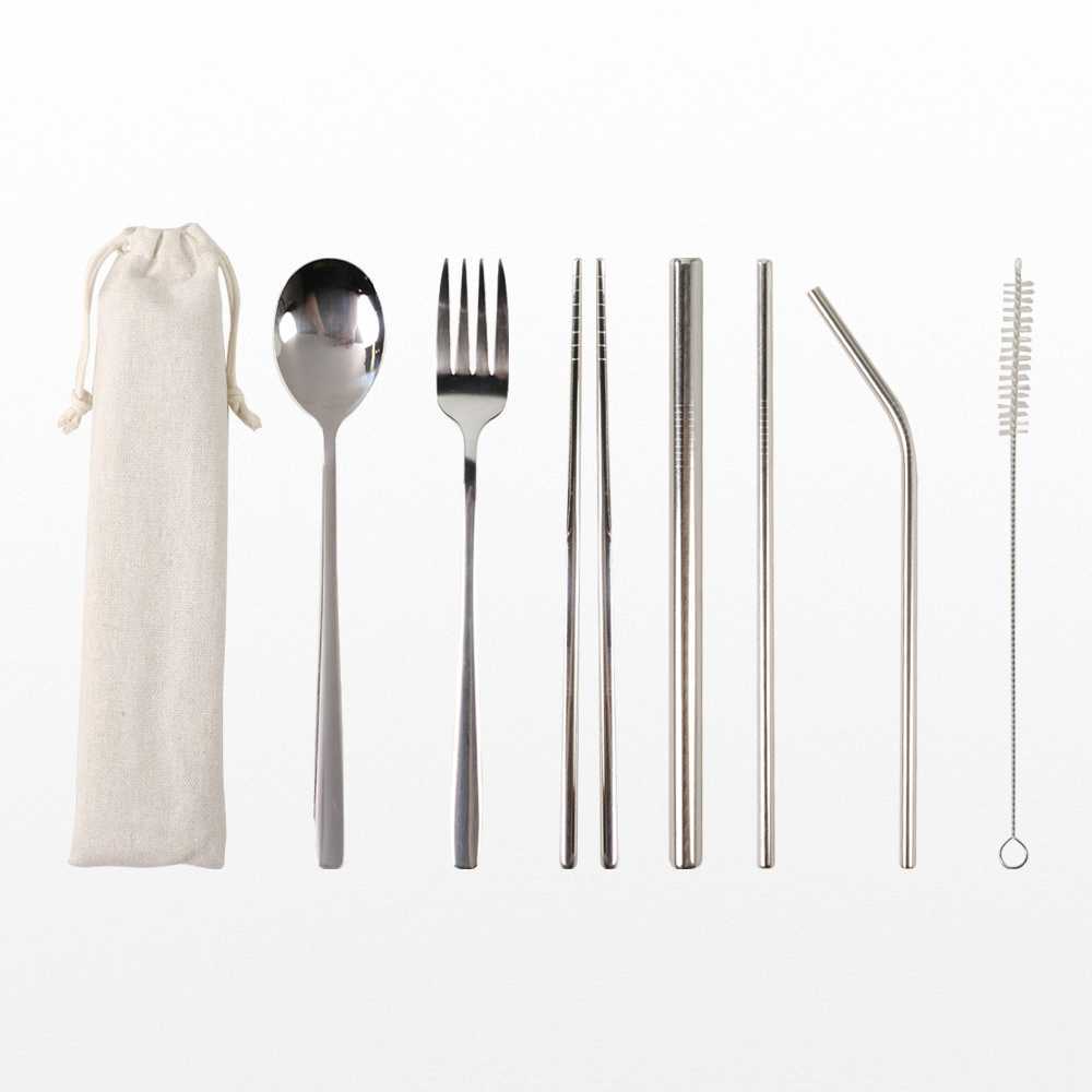 TaffHOME Set Alat Makan Sendok Garpu Sumpit Sedotan Cutlery with Pouch - T1