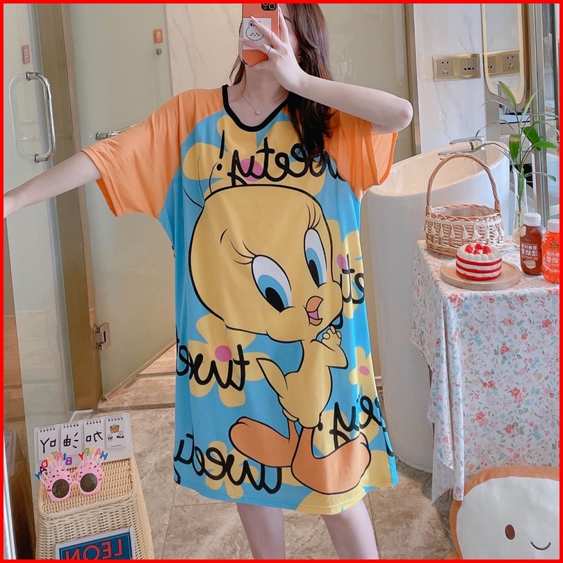 Smile Pakaian Tidur Wanita Import Daster Motif Kartun Lucu Korea Fit L 4073