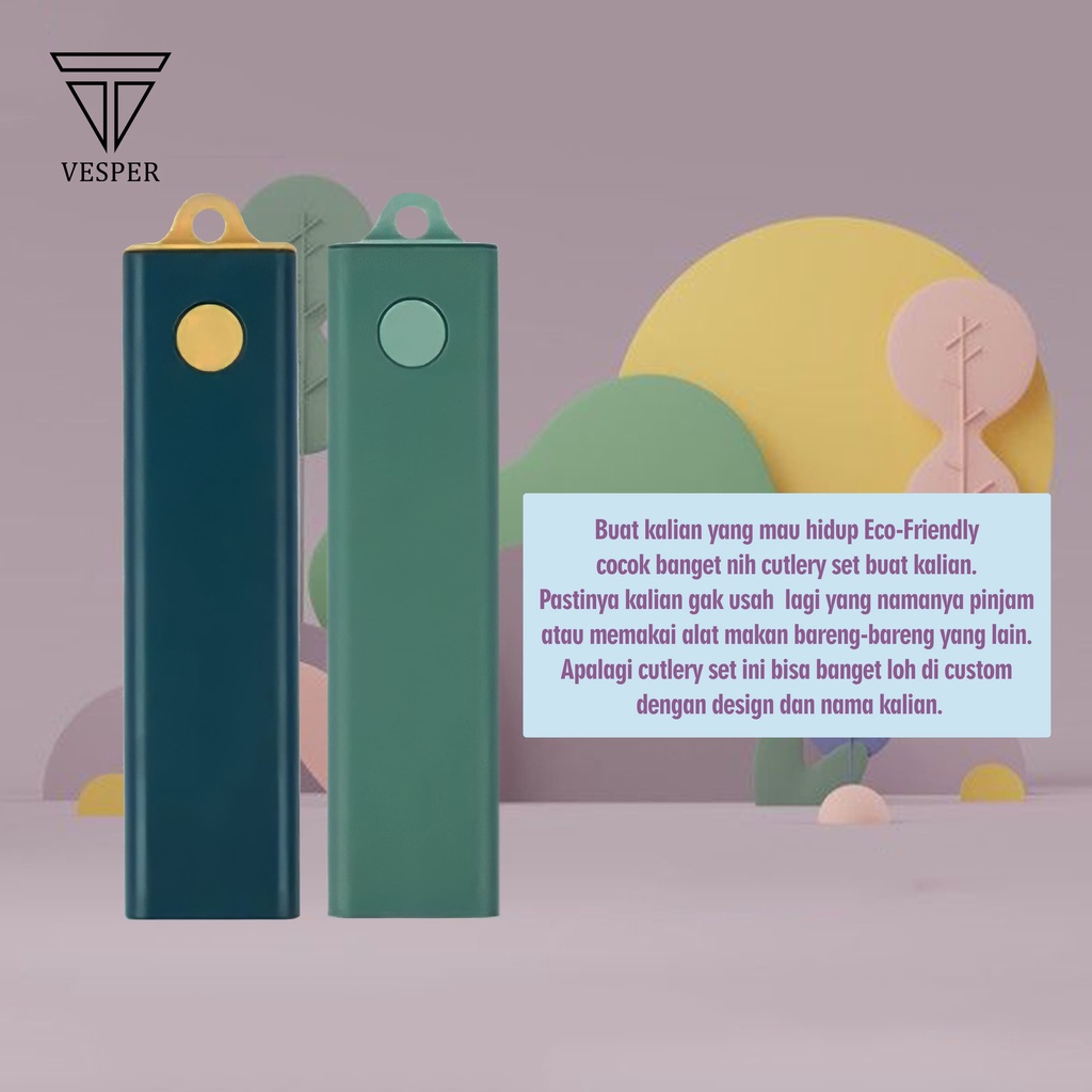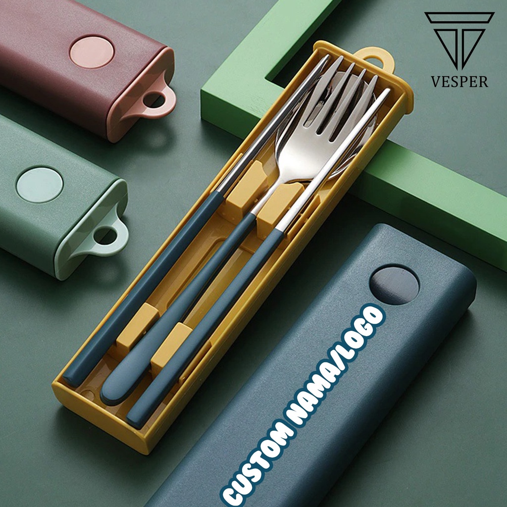 Portable cutlery 3pcs set (TERIMA CUSTOM CETAK LOGO) / alat makan korea sendok garpu sumpit stainless premium SUS304 wit