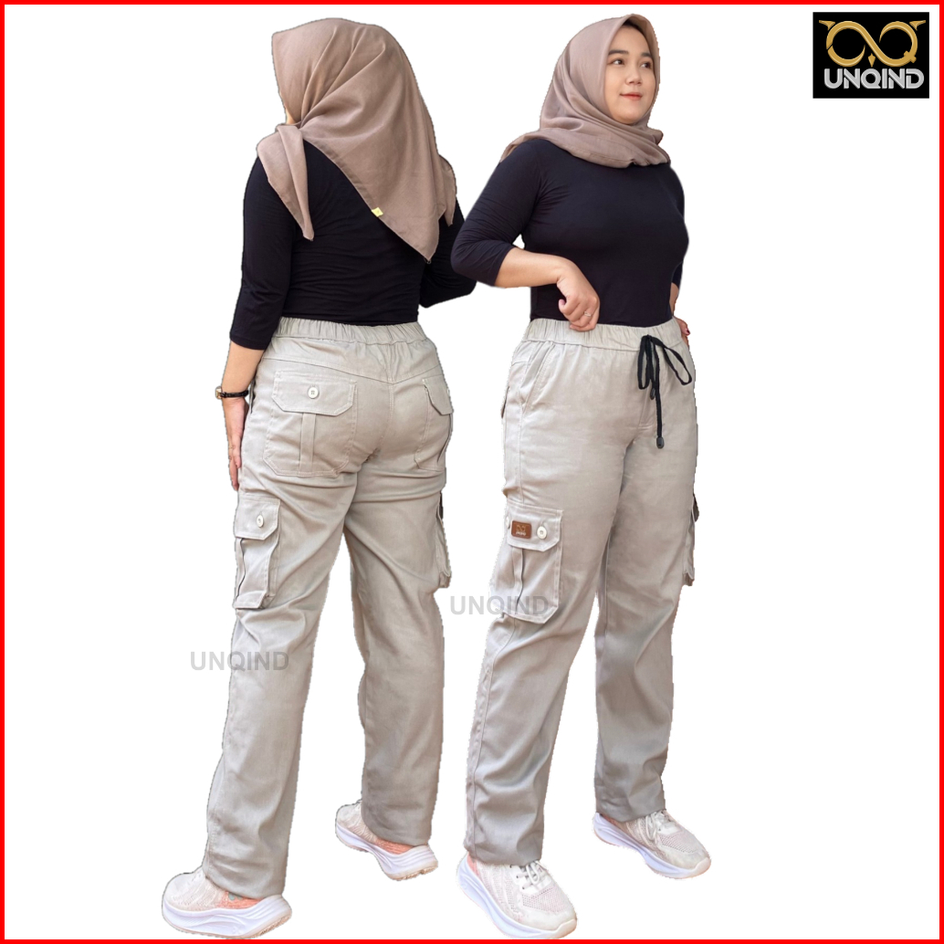 Unqind - Celana Cargo Wanita Jumbo Twill Stretch - Celana Panjang Wanita Jumbo Melar